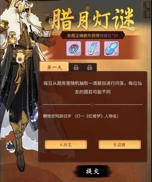 一念逍遥腊月灯谜答案大全最新「超实用」一念逍遥腊月灯谜活动中玩家需要根据灯谜来解答出谜底 因此很多玩家想知道一念逍遥腊月灯谜谜语答案是什么 游戏宝小编为您带来一念逍遥腊月灯谜答案大全攻略 一念逍遥腊月灯谜答案大全最新 1 迎接新年之际...