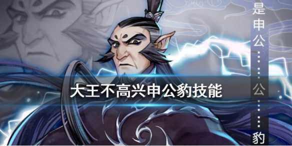 大王不高兴申公豹技能怎么样_大王不高兴申公豹技能详解[亲测有效]大王不高兴申公豹技能怎么样 大王不高兴与魔童降世进行了联动 哪吒和敖丙都已经放出 现在我们一起来说说申公豹的技能吧 下面就为大家带来大王不高兴申公豹技能详解 感兴趣的小伙...