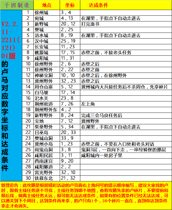 三国演义-吞噬无界【攻略】的卢马坐标图三国演义 吞噬无界 攻略 的卢马坐标图如下 作者 千 四制造 以上就是三国演义 吞噬无界 攻略 的卢马坐标图相关内容