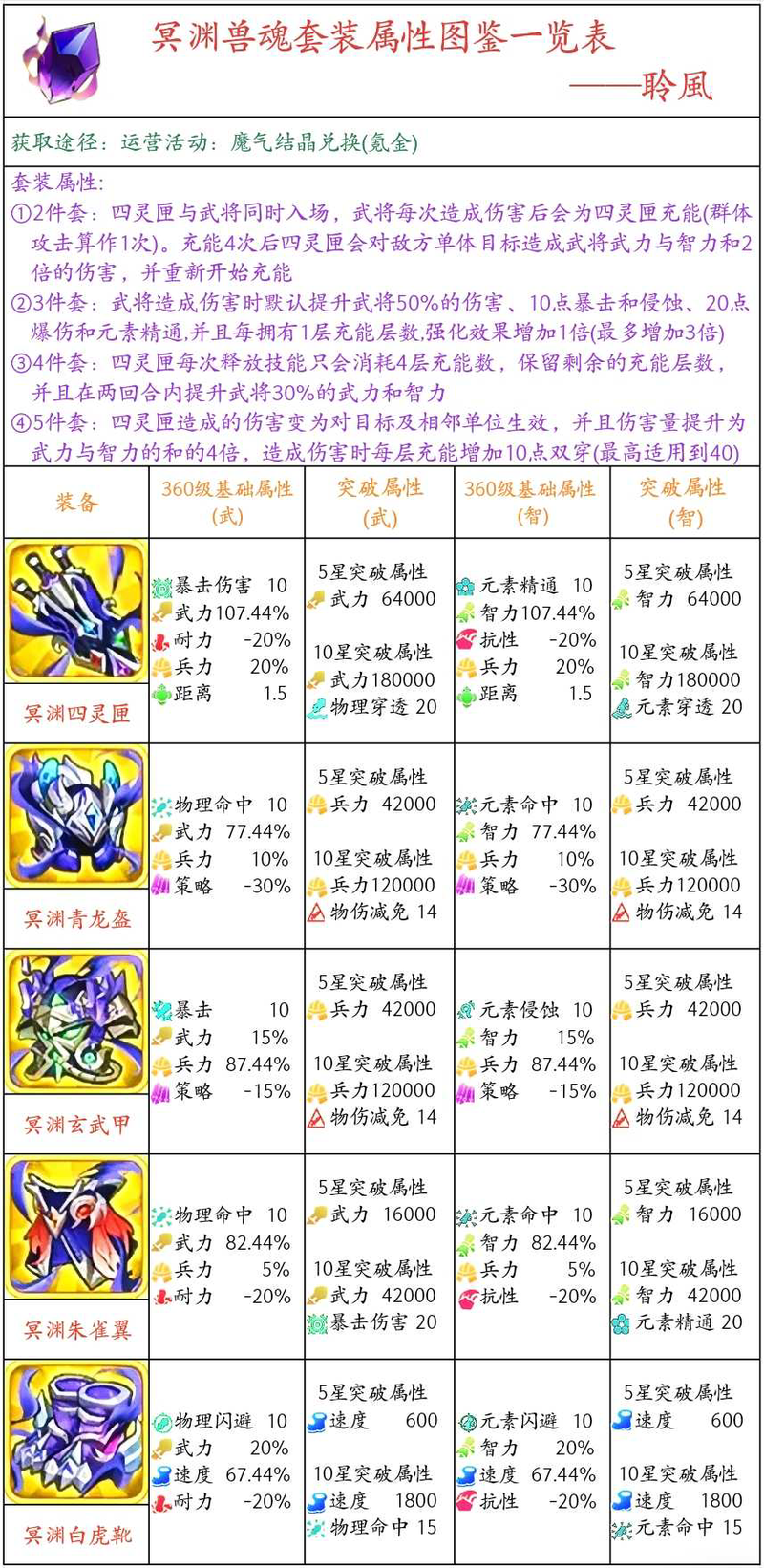 三国演义-吞噬无界冥渊兽魂套装三国演义 吞噬无界冥渊兽魂套装如下 冥渊兽魂套装属性图鉴 内含套装属性 获取途径 各装备满级属 性 突破 5 星属性 突破 10 星属性 以上就是三国演义 吞噬无界 冥渊兽魂套装相关内容
