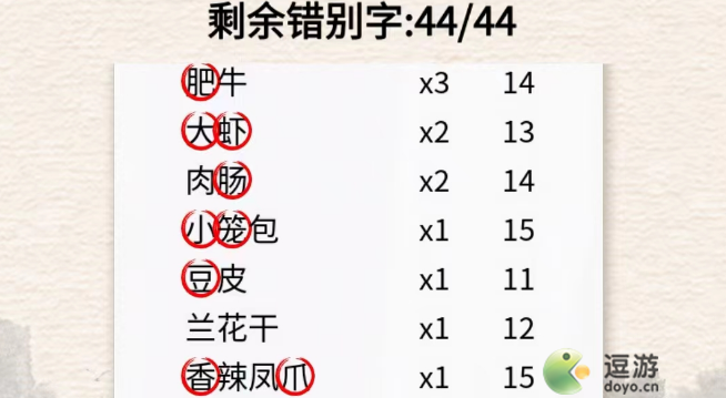 进击的汉字我的外卖单通关攻略「必看」进击的汉字我的外卖单是一个找错别字的关卡 这一关外卖单中的东西比较多 大家需要找到 44 个错别字 以下是详细的进击的汉字我的外卖单通关攻略 来看看吧 进击的汉字我的外卖单通关攻略 1 我的外卖单错...