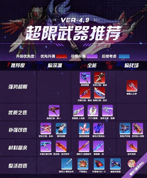 崩坏3超限武器养成推荐攻略[亲测有效]崩坏 3 里的武器非常多 玩家能获得的资源也有限 应该有限培养哪些武器才能发挥最大的战斗力呢 游戏宝小编为玩家准备了崩坏 3 超限武器养成推荐攻略 一起来看看吧 崩坏 3 超限武器养成推荐攻略 超...