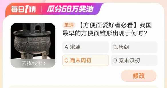 【方便面爱好者必看】我国最早的方便面雏形出现于何时方便面爱好者必看 我国最早的方便面雏形出现于何时 这是淘宝大赢家每日一猜 1 月 22 日的问题 不少小伙伴想知道 1 月 22 日这道题目的答案是什么 接下来就让我们一起了解一下吧 ...