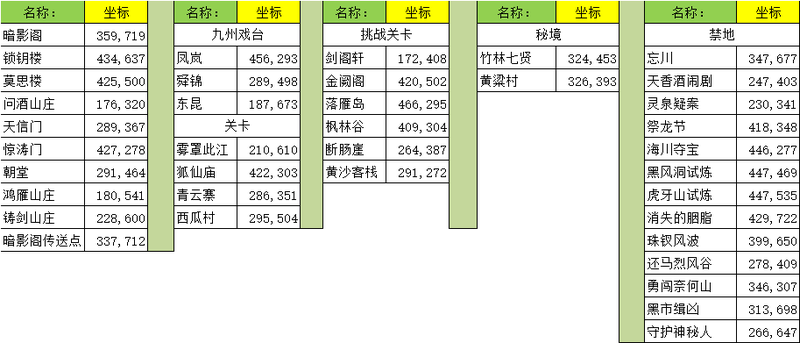 江湖悠悠【大世界攻略】——坐标一览表江湖 悠悠 大世界攻略 坐标一览表如下 胖友们可以说出你对大世界的疑问或者需求 小千都会抽时间回复大家伙也会尽量满足大家的需求 城镇 坐标表 门派 禁地等常用坐标表 行动点加成表 地方志商店商品表 ...