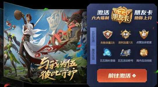 王者荣耀五五朋友卡特权介绍「超实用」王者荣耀在五五开黑节那天退出了五五朋友卡的活动 很多玩家还不知道怎么获取五五朋友卡以及如何使用五五朋友卡 游戏宝小编全面说明王者荣耀五五朋友卡特权介绍 王者荣耀五五朋友卡特权介绍 5 月 5 日 获...