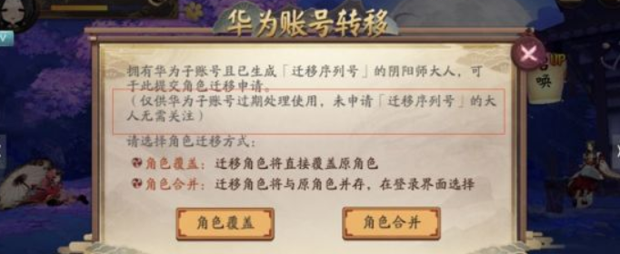 阴阳师华为渠道服怎么转官服阴阳师华为渠道服怎么转官服 最近游戏中有出现华为账号转移的公告 很多玩家还不知道怎么转移 还有转移的原因 下面是小编整理的阴阳师华为账号转网易方法 一起来看看吧 3X 软件资讯盒子获取阴阳师最新活动攻略 阴阳...