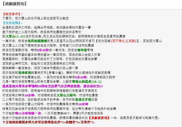 烟雨江湖大雪山龙象波若功任务怎么触发「必看」烟雨江湖大雪山龙象波若功任务怎么触发 很多人在大雪山转了半天没有触发任务 怀疑是不是还有别的限制才能触发 今天就跟着小编来一探究竟吧 烟雨江湖大雪山龙象波若功任务触发方法 有的玩家在做大雪山...
