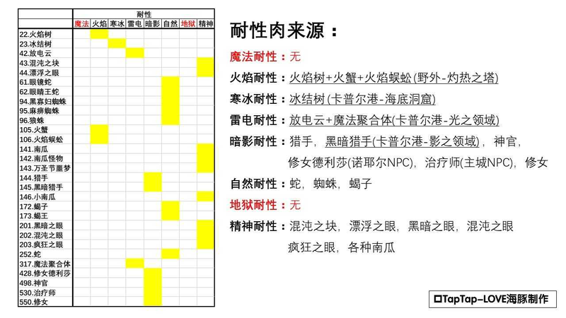 伊洛纳伊洛纳---各种属性肉来源总结「必看」伊洛纳 伊洛纳 各种属性肉来源总结如下 60 层卡住了 高层上不去 想刷各种抗性 发现不知道去哪里刷 论坛有人提到过 但是不知道全不全 所以自己去翻旅人日记 把所有加属性的肉都总结了一下 在...