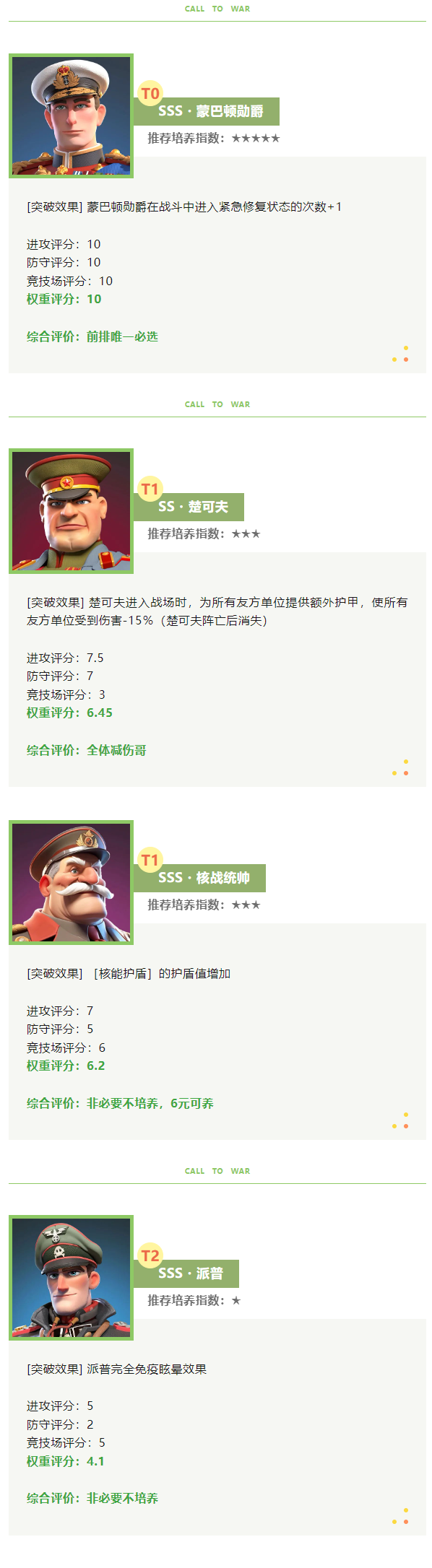 我的战争【我战小技巧】承伤型指挥官养成推荐!我的战争 我战小技巧 承伤型指挥官 养成推荐 如下 作者 二区强盛集团 感谢统帅的投稿 开服至今越来越多的指挥官加入战场 战场格局也发生了一些变化 一起来看看当前版本承伤型指挥官养成推荐排行...