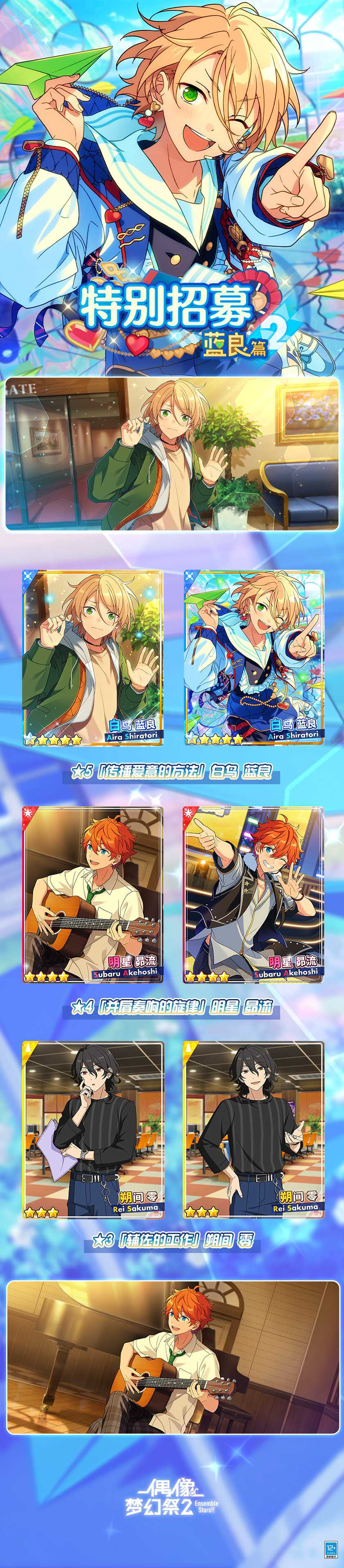 偶像梦幻祭2【公告】「特别招募 蓝良篇2」已开启!偶像梦幻祭 2 公告 特别招募 蓝良篇 2 已开启 如下 现在助理君为大家播报特别招募情报 一 特别招募 蓝良篇 2 限定卡池内容如下 开放时间 11 月 13 日 12 00 11 ...