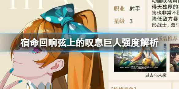 《宿命回响弦上的叹息》巨人强度解析 巨人角色怎么样宿命回响弦上的叹息巨人强度解析属于游戏中很厉害的一个角色 许多玩家想知道具体的强度 今天小编就给大家带来宿命回响弦上的叹息巨人怎么样 宿命回响弦上的叹息巨人强度解析 一 人物简介 动画...