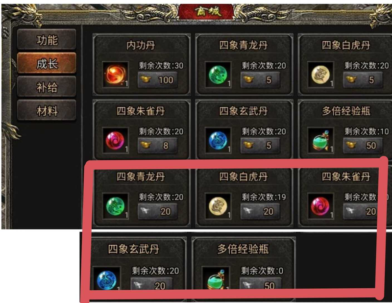虎符传奇游戏攻略-商城购买指南虎符传奇游戏 攻略 商城购买指南如下 本篇将讲述平民玩家如何更好地使用商城来提升战力 商城内分为四个区块 1 功能 上图用红圈圈住的 都是必买的 其余的东西都没什么用 或者是性价比太低 无需购买 2 成长...
