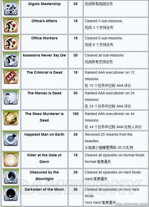 杀手已死 白金难点攻略白金的难点主要在 44 个 AAA 那里 刷这个方法我上面已经说得很清楚了 我就不多说了 解锁和完成所有的任务 这里只要你完成全部的主线 支线就会全部出来 全完成就好 还有几个主角技能升级满的 只要多去刷刷支线打...