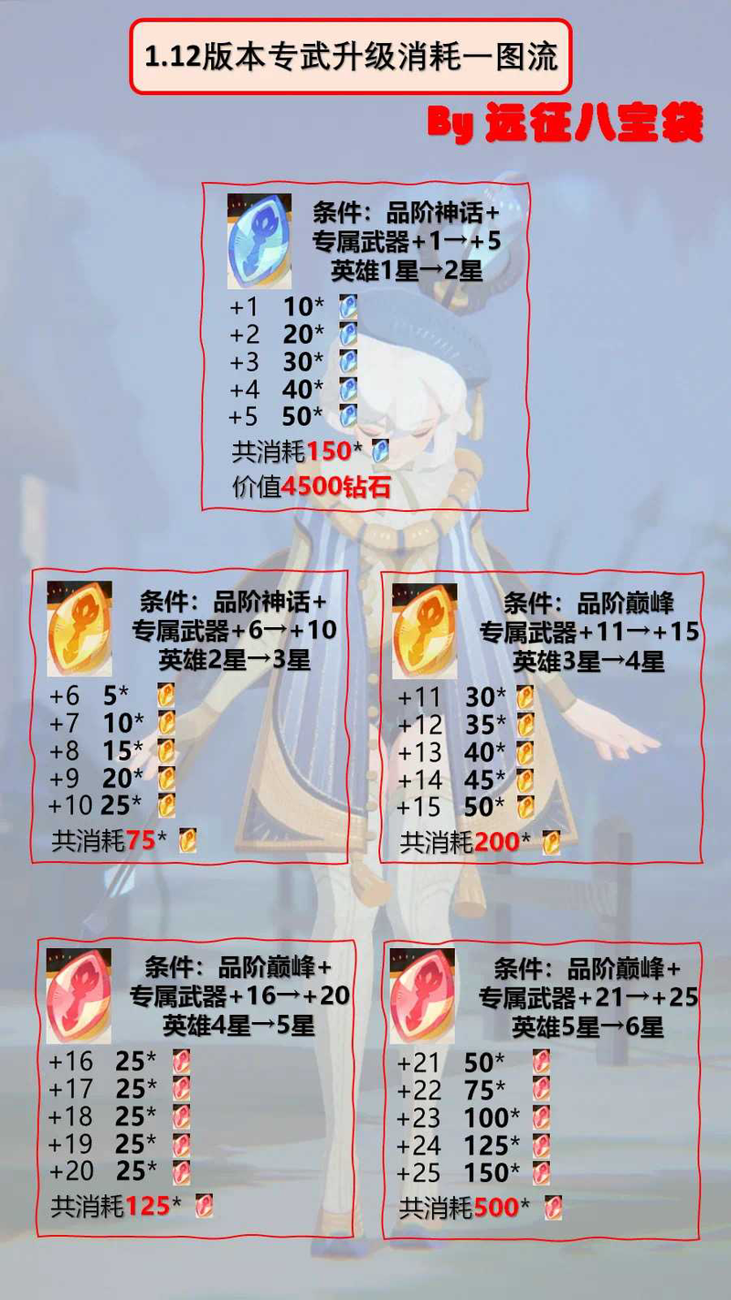 剑与远征:启程【远征八宝袋】1.12版本专武升级消耗一图流剑与远征 启程 远征八宝袋 1 12 版本专武升级 消耗一图流如下 以上就是剑与远征 启程 远征八宝袋 1 12 版本专武升级消耗一图流相关内容