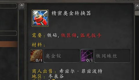 魔兽世界精密奥金转换器图纸哪里买「必看」精密奥金转换器是工程学专业制作的物品 需要购买图纸才能学会制作 那么魔兽世界精密奥金转换器图纸哪里买 呢 感兴趣的话一起进来 3X 软件看看魔兽世界精密奥金转换器图纸购买位置 吧 希望对大家有所...