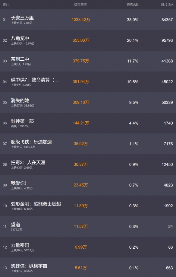 电影票房排行榜7月18日 2023.7.18八角笼中等电影票房排行榜[玩转游戏]7 月 18 日的电影票房情况怎么样 近期比较热门的话题新作是 长安三万里 和 八角笼中 那么今天 7 月 18 日的票房情况怎么样呢 接下来就让我们一起...