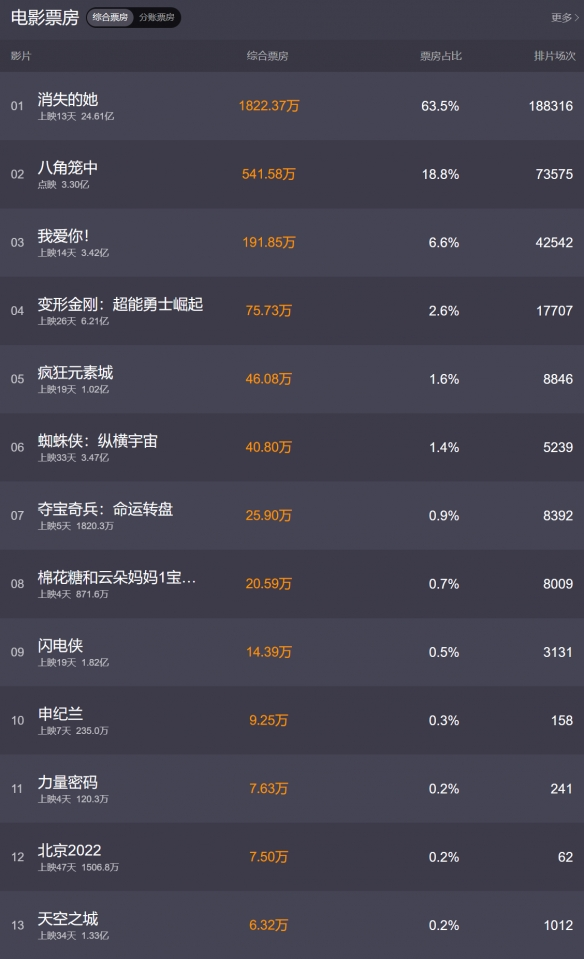 电影票房排行榜7月4日 2023.7.4消失的她等电影票房排行榜「别错过」7 月 4 日的电影票房情况怎么样 最近热门的电影主要是 消失的她 目前已经砍下了逾 20 亿的票房 那么今天 7 月 4 日的票房情况怎么样呢 接下来就让我们...
