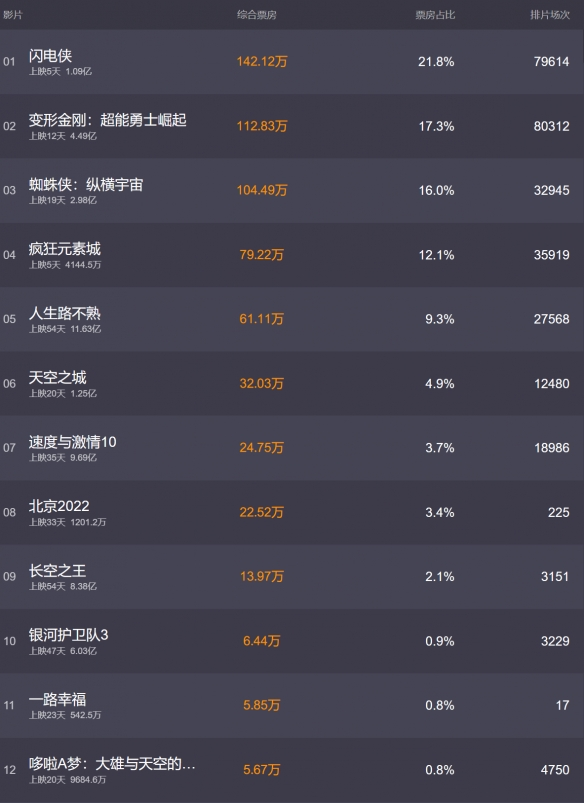 电影票房排行榜6月20日 2023.6.20电影票房排行榜6 月 20 日的电影票房情况怎么样 最近闪电侠 疯狂元素城正在热映 那么 6 月 20 日天的的票房情况怎么样呢 接下来就让我们一起了解一下今天 2023 年 6 月 20 ...
