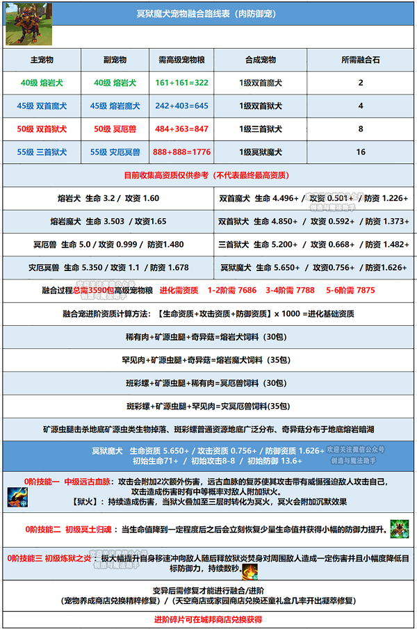 创造与魔法冥狱魔犬融合表一览创造与魔法推出了全新融合兽冥狱魔犬 很多玩家不知道怎么融合的 游戏宝小编带来创造与魔法冥狱魔犬融合表一览 希望可以帮到大家 创造与魔法冥狱魔犬融合表一览 1 进阶碎片可在城邦商店兑换获得 进阶石目前还没出 ...