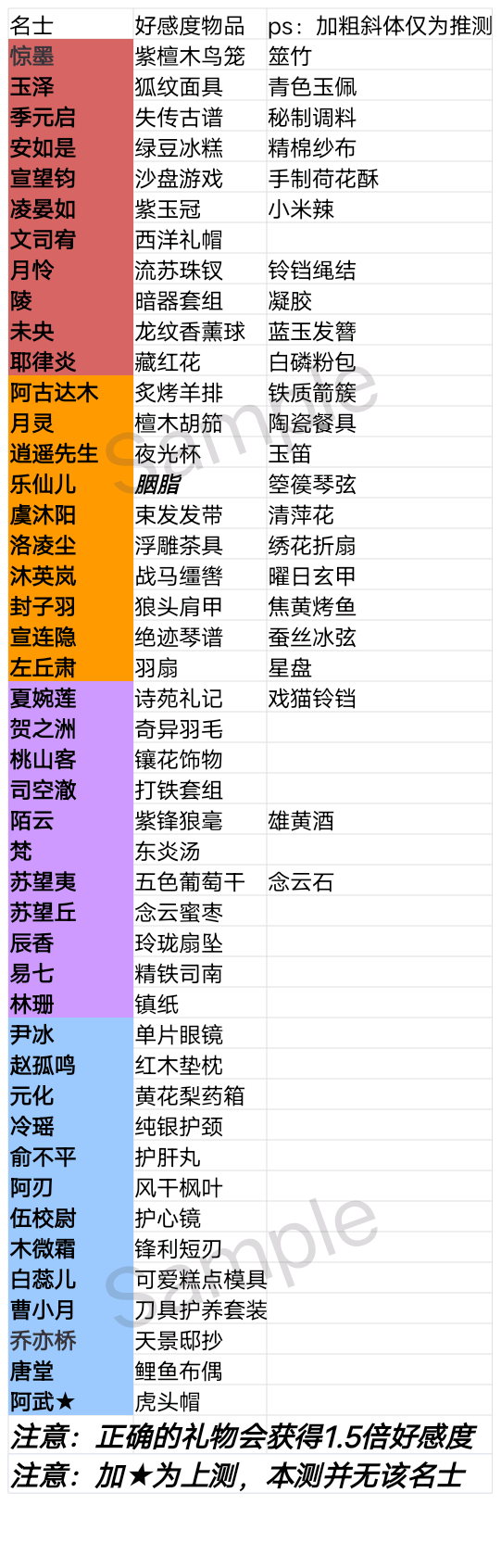 豪杰成长计划【送礼对人物的属性加成】珍宝和书籍[亲测有效]豪杰成长计划 送礼对人物的属性加成 珍宝和书籍如下 声明 本攻略转自 4399 群组 阿杰 作者创作不易 未经授权请勿转载 珍宝 红 无加成 汗血马 和田玉 曼陀罗花 红色珍宝...