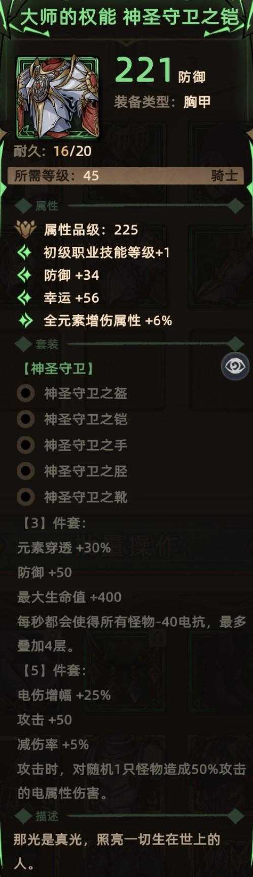 不一样传说2骑士装备图鉴-胸甲[玩转游戏]不一样传说 2 骑士装备图鉴 胸甲如下 骑士装备图鉴 胸甲 本图鉴按 暗金 套装 符文之语 的顺序分类 目前符文之语防具为法师 骑士通用 因此本帖中符文之语篇内容转移到 通用装备图鉴 胸甲 请...