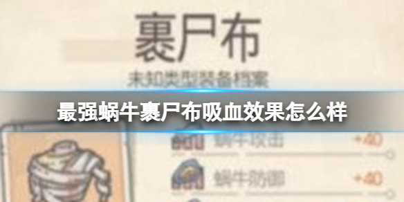 最强蜗牛裹尸布吸血效果怎么样「必看」最强蜗牛裹尸布吸血效果怎么样 游戏中的裹尸布能够吸血 很多玩家想知道这个吸血的效果如何 会不会很强 下面就跟着小编一起来了解一下最强蜗牛裹尸布的吸血效果吧 最强蜗牛裹尸布吸血效果怎么样 裹尸布属性解...