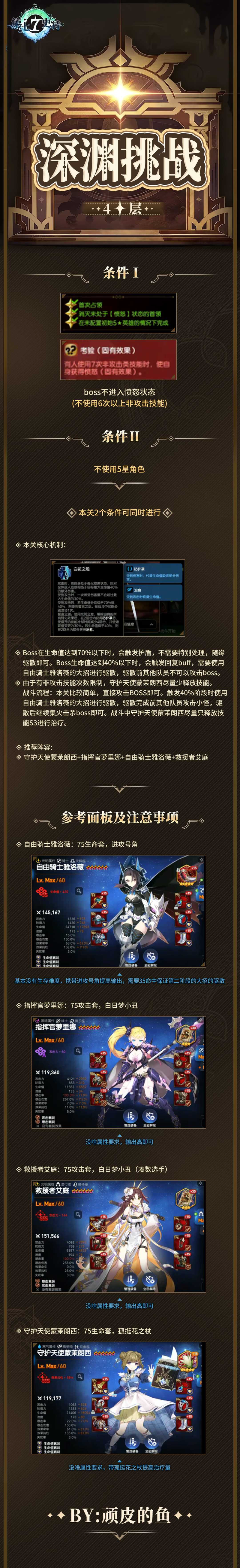 第七史诗欧勒毕斯冒险手册 - 深渊挑战难度通关攻略:4层、5层、6层第七史诗 欧勒毕斯冒险 手册 深渊挑战难度通关攻略 4 层 5 层 6 层如下 本文作者 B 站 id 顽皮的鱼 本文为玩家供稿 著作权归 作者所有 文章内容仅代表作...
