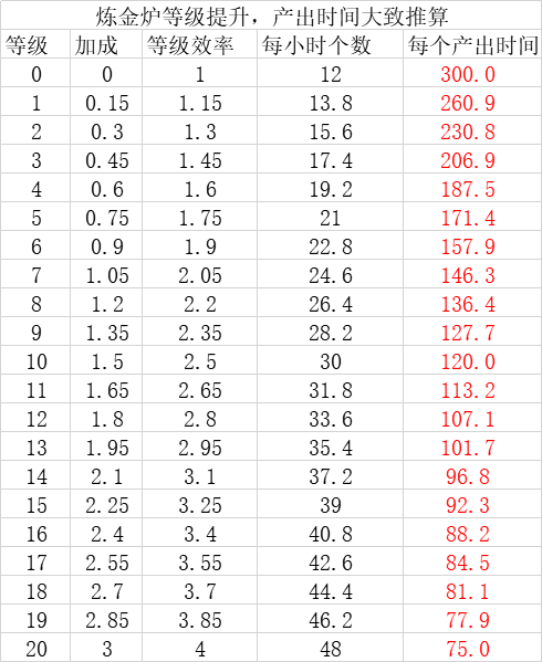 灵魂潮汐数据推算,炼金炉每个等级每个材料需要多少时间[玩转游戏]灵魂潮汐 数据推算 炼金 炉每个等级每个材料需要多少时间 如下 大致方向 设未加成每小时产出 x 个 一级加成 15 一级每个产出时间 261s 一级每小时产出 3600...