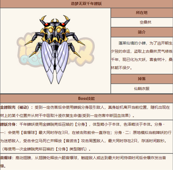 造梦无双千年蝉妖怎么过-千年蝉妖攻略分享造梦无双千年蝉妖怎么过 在这款游戏中有一个 boss 千年蝉妖 这个 boss 的讨伐难度非常高 很多玩家没有做功课在千年蝉妖这里卡了很久 今天小编就带来了造梦无双千年蝉妖攻略分享 希望大家喜欢...