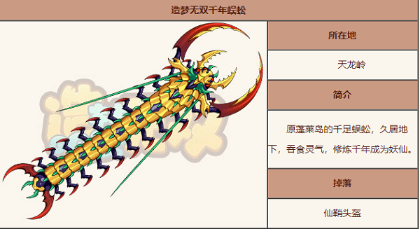 造梦无双千年蜈蚣技能表千年蜈蚣是造梦无双近期上线的新 boss 很多玩家都想要知道造梦无双千年蜈蚣技能是什么 游戏宝小编为大家带来造梦无双千年蜈蚣技能表 造梦无双千年蜈蚣技能表 1 执锐披坚 被动 千年蜈蚣百足如刀刃般锋利 整个躯干具...