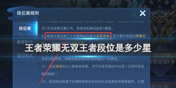 王者荣耀无双王者段位是多少星王者荣耀无双王者段位是多少星 游戏中有很多段位 这次三月更新了很多段位 而且有些还是新增的 以前没有的 下面就跟着小编一起来了解一下王者荣耀无双王者段位星的等级吧 王者荣耀无双王者段位是多少星 王者荣耀无双...