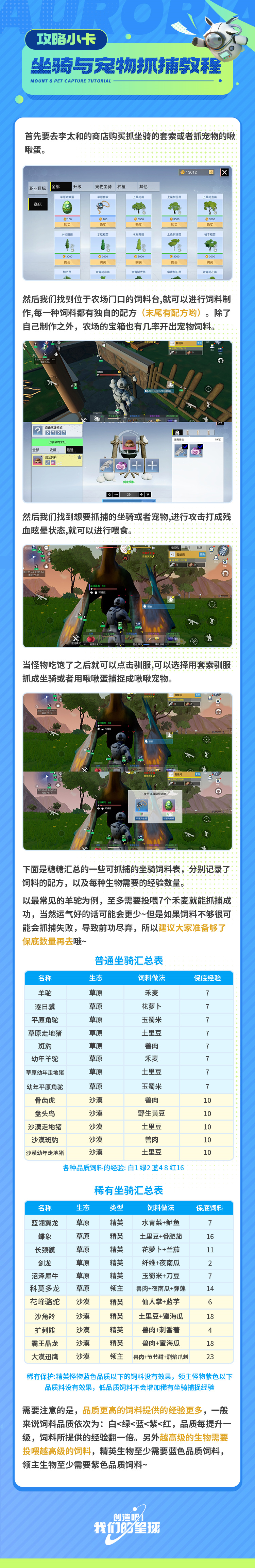 创造吧!我们的星球攻略小卡——坐骑与宠物抓捕教程创造吧 我们的星球 攻略小卡 坐骑与宠物抓捕教程如下 以上就是创造吧 我们的星球攻略小卡 坐骑与宠物抓捕教程相关内容