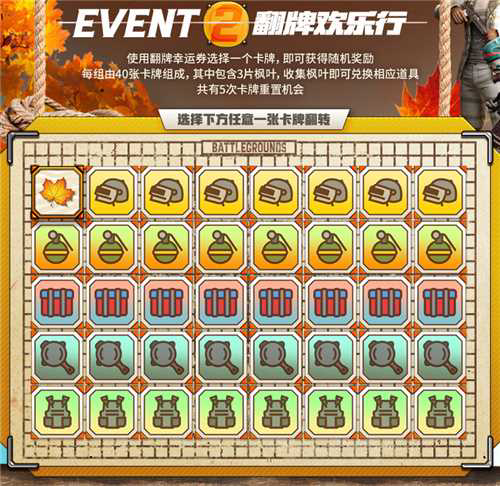 金秋夺宝记·吃鸡翻牌大作战盛大开启,奖励丰厚各种好礼等你来拿在这个金秋时节 为了让广大玩家享受到更加刺激和丰富的游戏体验 PUBG 特别推出了 金秋夺宝记 吃鸡翻牌大作战 活动 本次活动将为大家带来一系列精彩纷呈的挑战和丰厚的奖励 让...