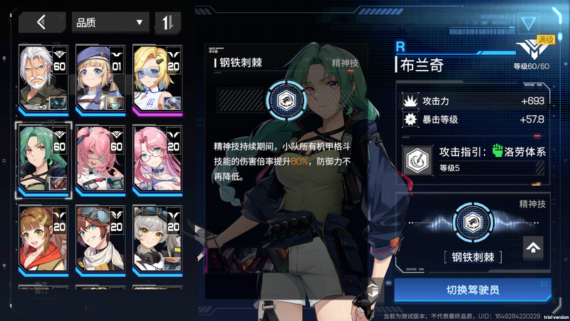 硬核机甲启示本次测试游玩体验硬核机甲启示 本次测试游玩体验如下 1 养成 如图所示 一台机体的养成面板如上 强化 即等级 驾驶 员 可随时根据需要换机 技能 1 天赋 2 主动 1 大招 2 特殊 改装 同驾驶员 一套装备可随时拆给其...