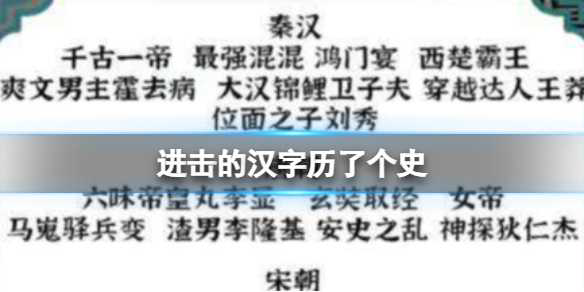 《进击的汉字》历了个史 历了个史通关攻略进击的汉字 是一款历史题材的游戏 涉及到许多汉字的演变和发展 然而 有些玩家可能不清楚汉字的历史和通关攻略 在这里 我将为大家介绍相关攻略 如果你感兴趣 就和我一起来看看吧 进击的汉字历了个史 ...