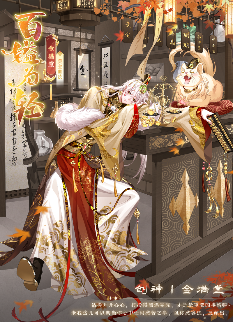 全民养成之女皇陛下【侍从介绍】黄金血统金满堂侍从介绍全民养成之女皇陛下 侍从介绍 黄金血统金满堂侍从介绍如下 姓名 金满堂 性格 刁蛮 爱 好 描画神鸟 信物 旸谷乌 语录 听说世人喜欢把黄金藏在家里 那你什么时候带我回家 创神金满堂...