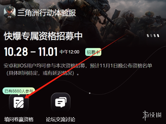 三角洲行动体验服测试资格获取方法[玩转游戏]三角洲行动即将开启体验服 玩家们可以参与测试资格招募活动 通过填写问券获取资格 经过筛选后公布名单 接下来小编就为大家带来详细的获取方法 感兴趣的伙伴们千万不要错过啦 攻略大全 三角洲行动体...