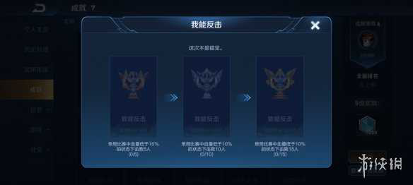 王者荣耀我能反击成就怎么达成「超实用」王者荣耀我能反击成就怎么达成 游戏中的我能反击这个也是一个可以解锁的成就 很多玩家不知道这个成就要如何达成 下面就跟着小编一起来了解一下王者荣耀我能反击成就达成的条件吧 王者荣耀我能反击成就怎么达...