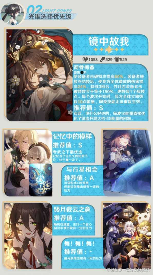 《崩坏星穹铁道》阮梅角色分析及配装攻略[亲测有效]崩坏星穹铁道 1 6 版推出了新角色阮梅 很多玩家想知道阮梅怎么玩 下面请看由 HoYo 青枫 带来的 崩坏星穹铁道 阮梅技能解析及配装攻略 希望对大家有用 光锥选择 首选是专武和叠 ...