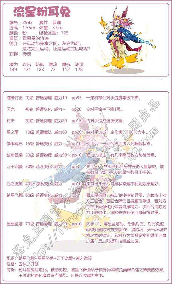 洛克王国流星粉耳兔技能表「别错过」洛克王国流星粉耳兔技能和属性都十分不错 因此很多玩家想知道洛克王国流星粉耳兔技能是什么 游戏宝小编为您带来洛克王国流星粉耳兔技能表一览 洛克王国流星粉耳兔技能表 1 粉耳兔超进化 美女你谁 超进化前后...