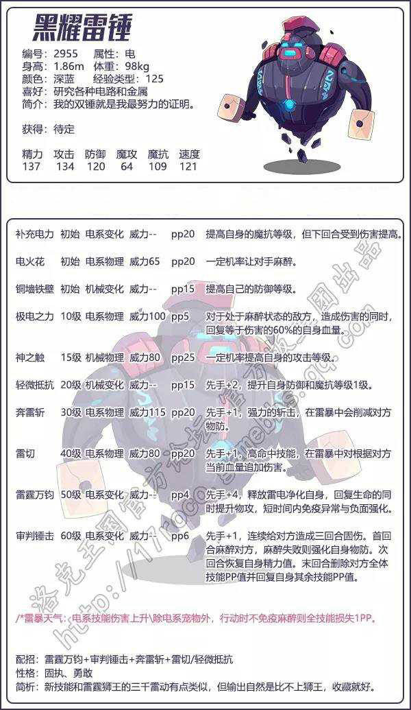 洛克王国黑耀雷锤技能表洛克王国黑耀雷锤是新上线的宠物之一 属性和技能都非常出色 因此很多玩家想知道洛克王国黑耀雷锤技能是什么 游戏宝小编为您带来洛克王国黑耀雷锤技能表介绍 洛克王国黑耀雷锤技能表 1 黑耀雷锤技能表如上图所示 属性为电...