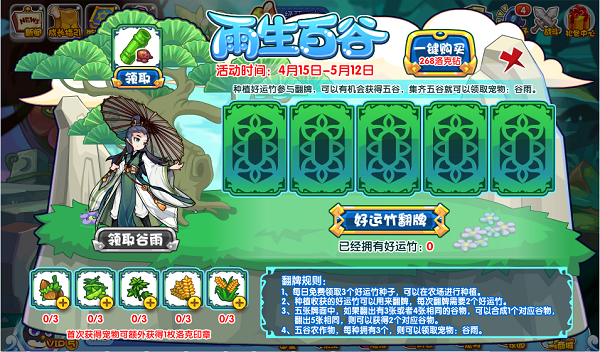 洛克王国雨生百谷活动攻略[亲测有效]洛克王国雨生百谷是一个种植活动 玩家每天领取好运竹种植即可获得谷雨哥哥 游戏宝小编带来洛克王国雨生百谷活动攻略 希望可以帮到大家 洛克王国雨生百谷活动攻略 1 活动时间 4 月 15 日 5 月 1...