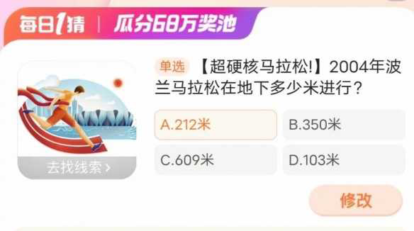 【超硬核马拉松】2004年波兰马拉松在地下多少米进行2024 淘宝每日一猜活动 1 月 8 日的问题是 超硬核马拉松 2004 年波兰马拉松在地下多少米进行 不少小伙伴想知道 1 月 8 日这道题目的答案是什么 接下来就让我们一起了解...