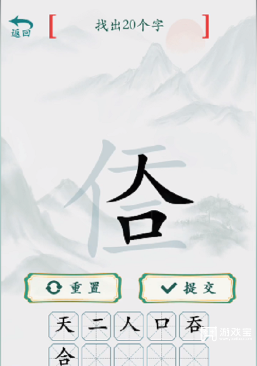 疯狂梗传亻天亘找出20个字攻略[亲测有效]疯狂梗传最新找字关卡中需要玩家从亻天亘上找出 20 个汉字后才可以通关 游戏宝小编带来疯狂梗传亻天亘找出 20 个字攻略 希望可以帮到大家 疯狂梗传亻天亘找出 20 个字攻略 1 天 二 人 ...