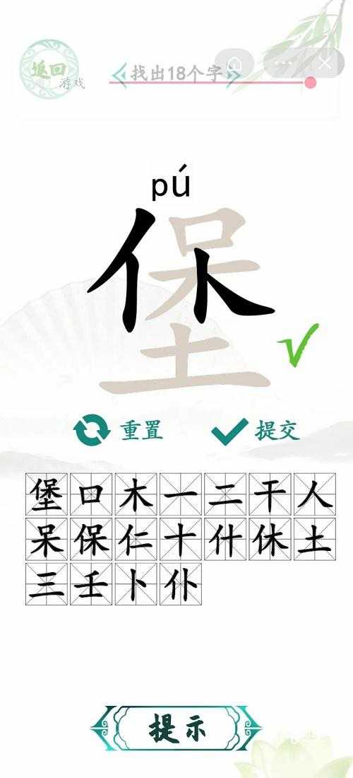 汉字找茬王堡找出18个字攻略汉字找茬王最新找字关卡里需要玩家从堡上面找出 18 个字后才可以过关 游戏宝小编带来汉字找茬王堡找出 18 个字攻略 希望可以帮到大家 汉字找茬王堡找出 18 个字攻略 1 全选 堡 2 上边保 保 一 二...