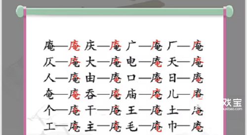 汉字找茬王庵找出21个字攻略汉字找茬王最新找字关卡中 需要玩家从庵上面找出 21 个汉字后才可以过关 游戏宝小编带来汉字找茬王庵找出 21 个字攻略 一起来看看吧 汉字找茬王庵找出 21 个字攻略 1 广 大 电 奄 庵 厂 口 日 ...
