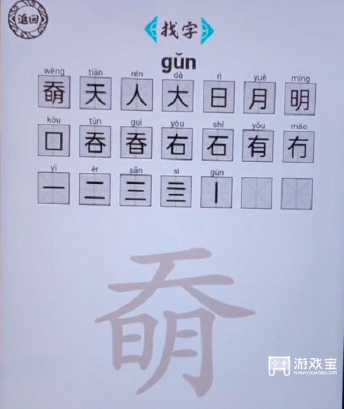 汉字梗传烎找出15个字通关攻略「超实用」汉字梗传有一关需要玩家从烎上找出 15 个汉字才能通关 那这 15 个字是哪些呢 游戏宝小编带来汉字梗传烎找出 15 个字通关攻略 一起来看看吧 汉字梗传烎找出 15 个字通关攻略 1 一 二 ...