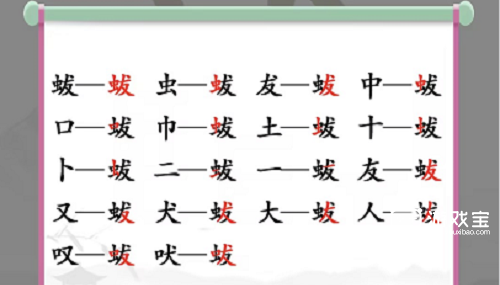 汉字找茬王蛂找出18个字攻略[亲测有效]汉字找茬王最新找字关卡里需要玩家从蛂上找出 18 个汉字后才可以过关 游戏宝小编带来汉字找茬王蛂找出 18 个字攻略 一起来看看吧 汉字找茬王蛂找出 18 个字攻略 1 虫 口 中 友 犮 十 ...