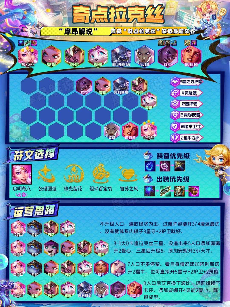金铲铲之战骚套路奇点拉克丝,随机爆杀C位杀手,场均1.5W伤害「必看」金铲铲之战 骚套路奇点拉克丝 随机爆杀 C 位杀手 场均 1 5W 伤害如下 大家好 我是摩昂解说 每天会给大家带来云顶之弈与金铲铲之战的上分攻略 本期摩昂为大家带...