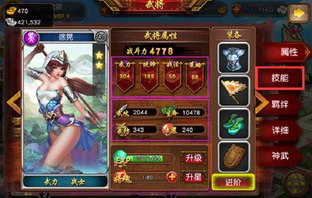 三国女神变态手游_三国女神手游安卓无敌版「超实用」今天给大家带来三国女神公益服人物属性与技能介绍 三国女神变态手游 三国女神手游安卓激活成功教程 武将基本属性 武将的主信息界面 显示武将的综合战斗力 紫色框则显示四项主属性 以及根据武...